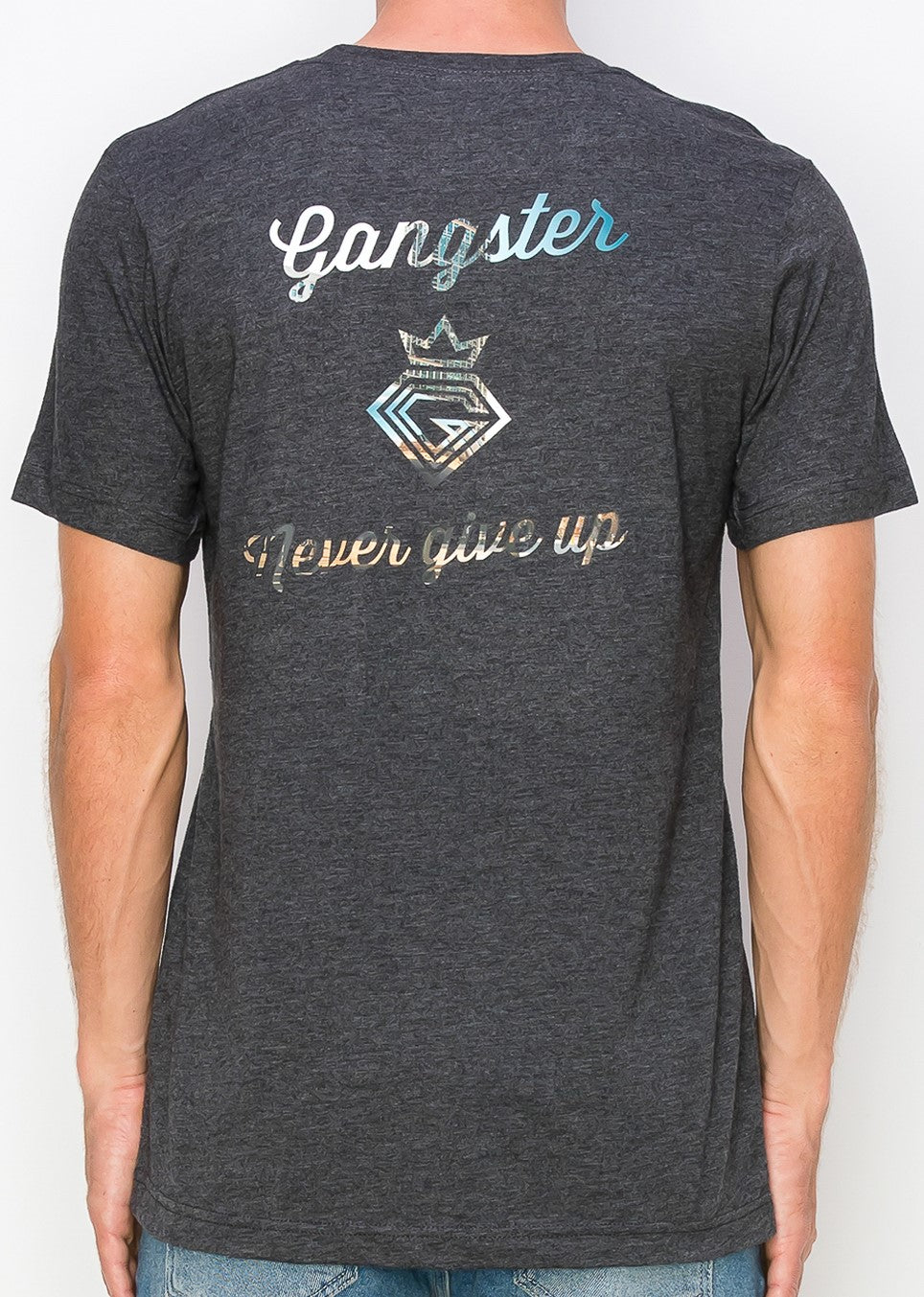 Grey T-Shirt, Chicago Theme, Never Give Up Back Print (Limited edition).