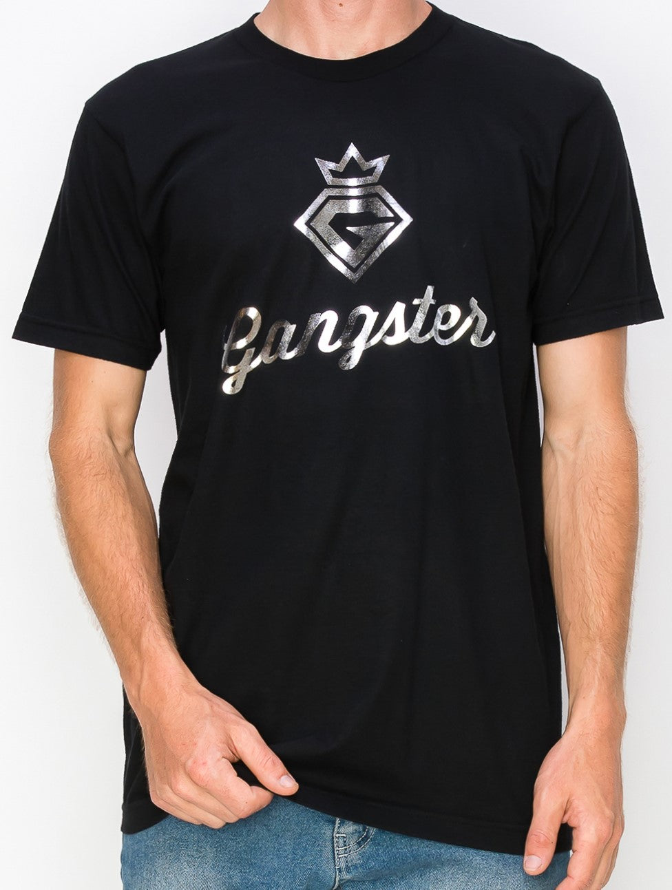 Supima Cotton Black T-Shirt (Silver Foil Print) Gangster Fashion