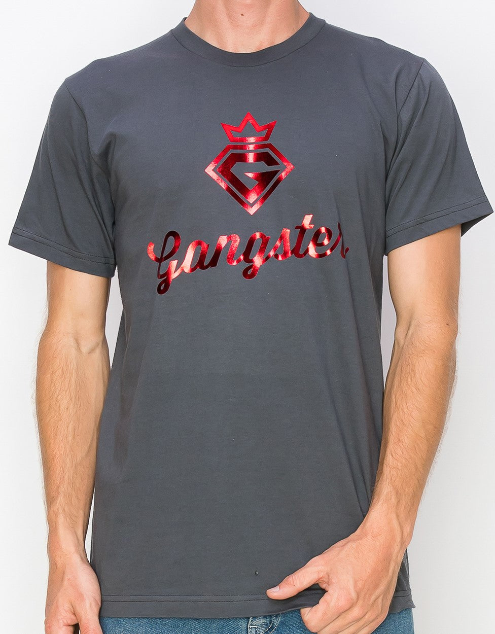 Supima cotton Grey T-Shirts (Red Foil Print) Gangster Fashion