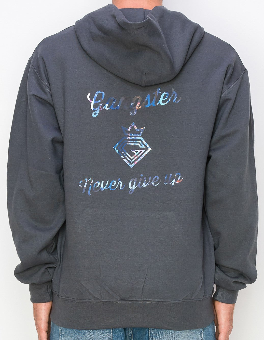 Grey Hoodie, New York Theme, Never Give Up Back Print. Limited Edition.