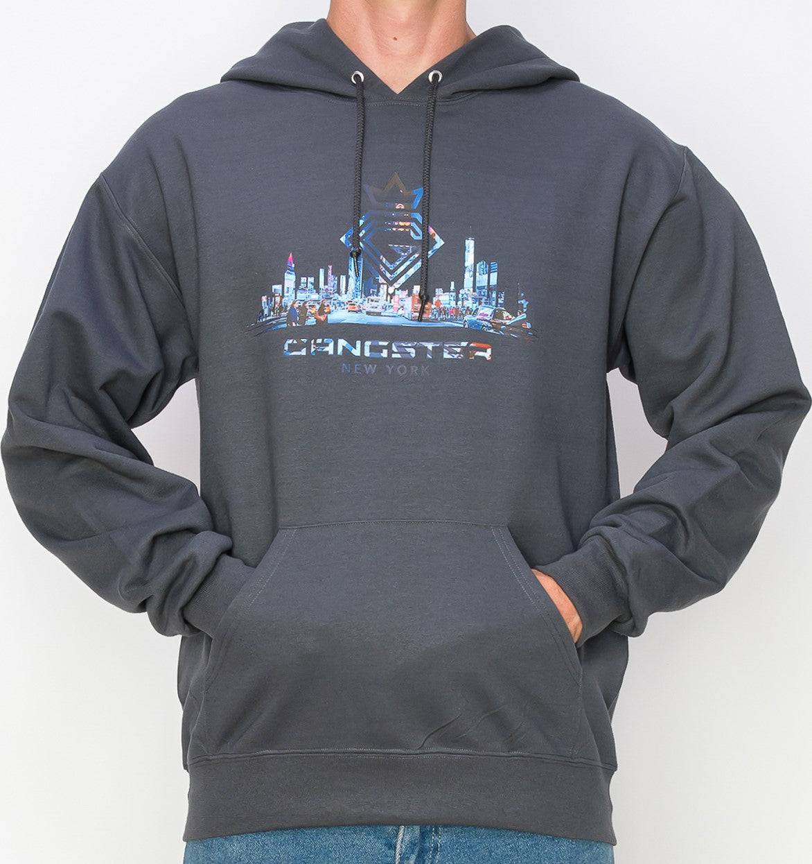 Organic Cotton Grey Pullover Hoodie (New York Theme) Gangster Fashion, Limited Edition.
