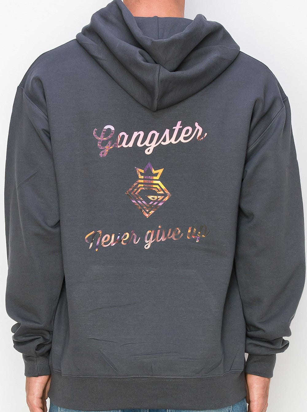 Grey Hoodie, Los Angeles Theme, Never Give up Back Print, Limited Edition.