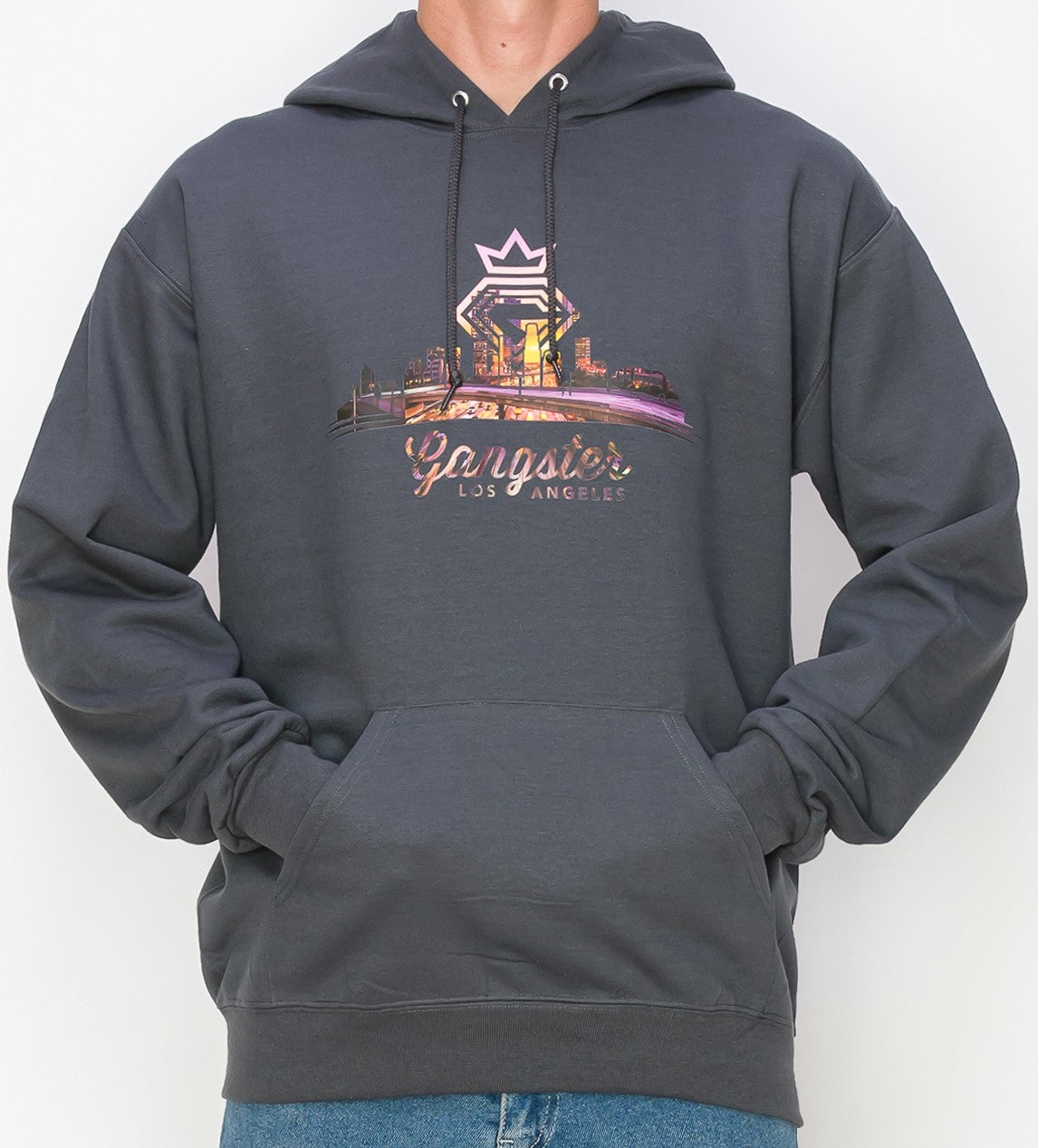 Organic Cotton Grey Pullover hoodie (Los Angeles Theme) Gangster Fashion, (Limited Edition