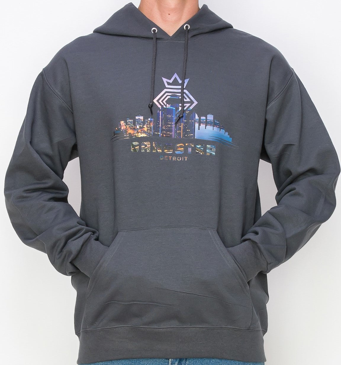Organic Cotton Grey Pullover hoodie (Detroit Theme) Gangster Fashion (Limited edition)