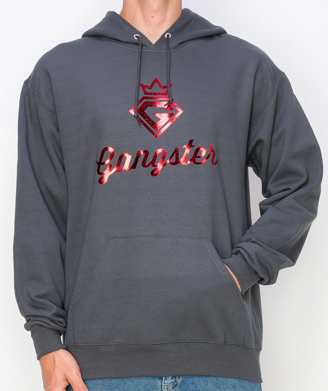 Organic Cotton Grey Hoodie (Red Foil Print) Gangster Fashion