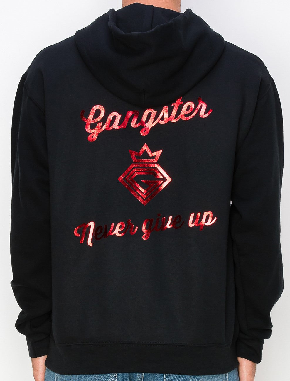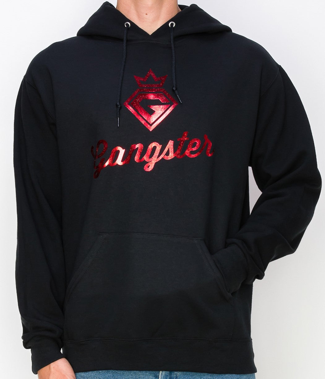 Organic cotton Black Hoodie (Red Foil Print) Gangster Fashion