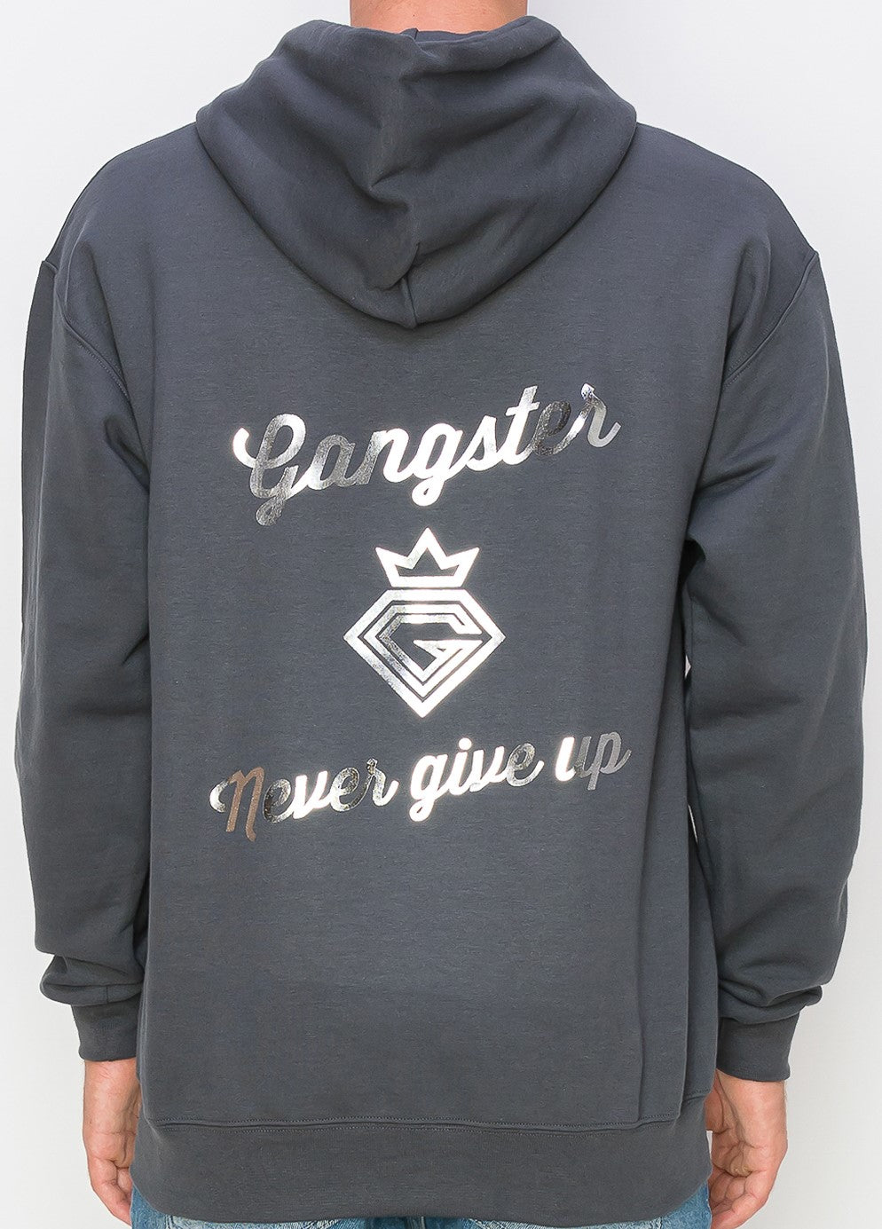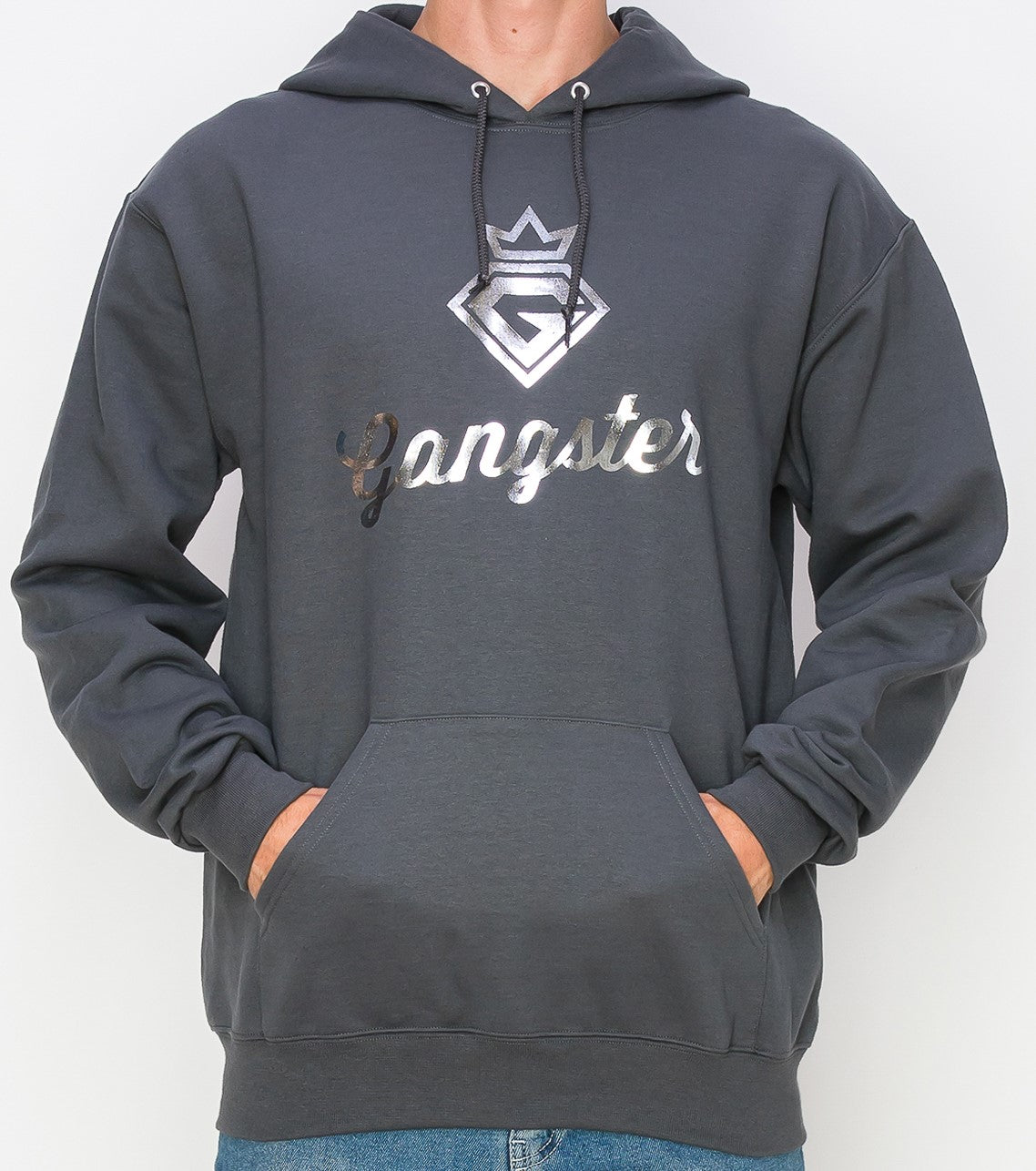 Organic Cotton Grey Hoodie (Silver Foil Print) Gangster Fashion