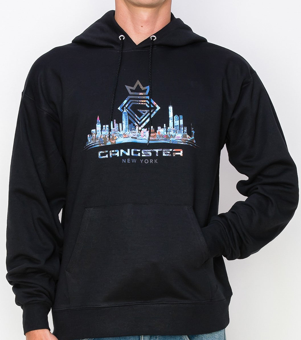 Organic Cotton Black Pullover Hoodie (New York Theme) Gangster Fashion (Limited edition)